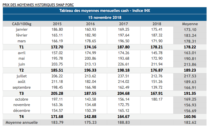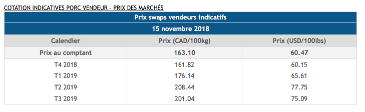 Voici les cotations indicatives et les dernières nouvelles sur les marchés du porc et des grains:
