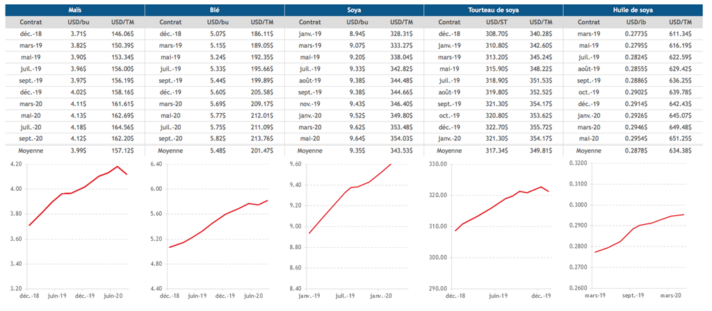- Malgré tout, le marché demeure très positif sur les prix de 2019 alors les attentes d’exportations américaines sont revues à la hausse.