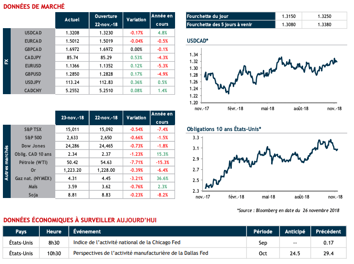 Brexit? Oui, c’est signé, enfin presque…l’Union Européenne et les Britanniques se sont mis d’accord sur les conditions de leur divorce et on ne rentrera pas dans les détails du document de 600 pages. C’est maintenant à la chambre des communes de valider l’accord à la mi-décembre. Rien n’est donc certain et la volatilité sur le GBP (et sur le USD) devrait se poursuivre.