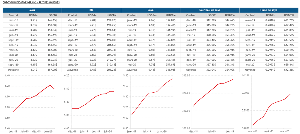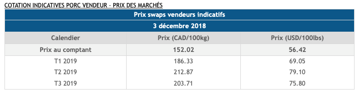 Voici les cotations indicatives et les dernières nouvelles sur les marchés du porc et des grains: