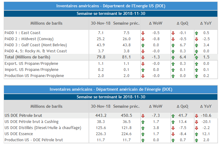 - Le département d’énergie américain a publié les données d’inventaires concernant le pétrole brut et ses dérivés. Le marché s’attendait une baisse des inventaires de 1.6 millions de barils alors que le résultat se chiffre à une réduction de 7.3 millions de barils.