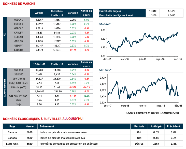 Nous surveillons ce matin l’indice des prix des maisons neuves au Canada, les prix à l’importation et l’exportation, ainsi que les premières demandes de chômage à 8h30 aux États-Unis.