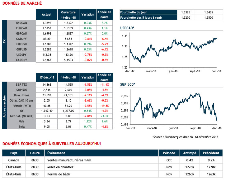 C’est un véritable test de son indépendance auquel sera soumise la Réserve fédérale américaine (Fed) demain. Du président Trump qui considère aberrant le simple fait d’envisager une hausse de taux, au conseiller de la maison blanche qui qualifie de « folle » la mention de trois resserrements l’an prochain, les attaques à l’égard de M. Powell se multiplient. Force est d’admettre que ce serait la première fois depuis 1994 que nous aurions droit à un resserrement monétaire alors que les bourses traversent une période turbulente. Maintenant anticipée à 67%, la décision de demain sera l’occasion pour la Fed de confirmer que son rôle théorique est de soutenir l’économie américaine et non les indices boursiers.