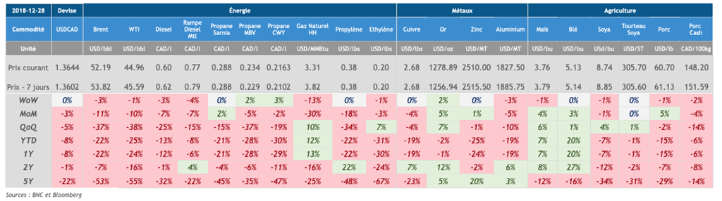 - C’est le calme plat sur la devise canadienne pour terminer l’année 2018. Les yeux se tourneront vers la publication des chiffres d’emploi vendredi afin de voir si le huard sera supporté. Un rebond du pétrole pourrait très certainement aider la devise canadienne à reprendre de l’altitude.