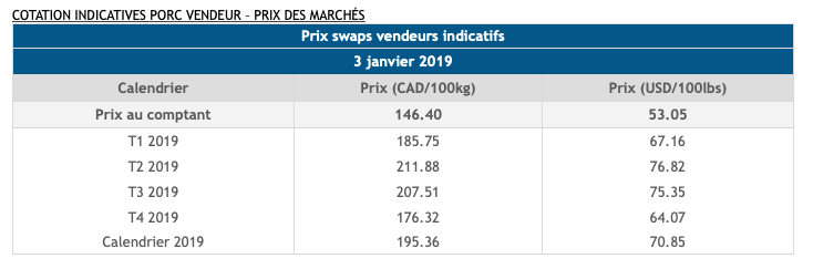 Voici les cotations indicatives et les dernières nouvelles sur les marchés du porc et des grains: