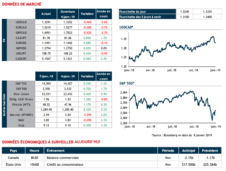Exportateurs, la mise en place de solutions de couverture à plus long terme pourrait être considérée. Les niveaux demeurent attrayants. Pour les importateurs ayant repoussé quelques achats de USD au cours des dernières semaines, les ordres graduels au marché sont intéressants.