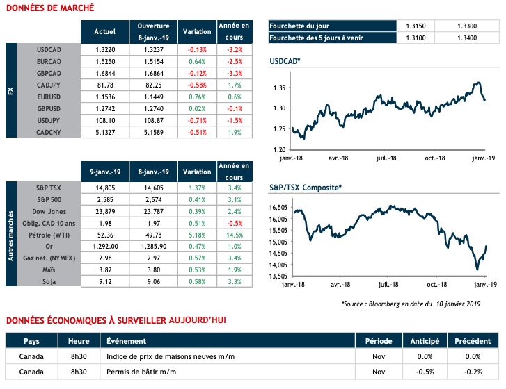 La plus récente chute du prix du baril de pétrole ainsi que la guerre commerciale sino-américaine ont mené la BdC à revoir à la baisse ses prévisions de croissance pour 2019 (1.7% contre 2.1%). Cependant, fait intéressant, il fut mentionné par la banque centrale que les taux d’emprunt devront éventuellement augmenter et la prévision de croissance pour 2020 fut rehaussée à 2.1% (1.9% précédemment).