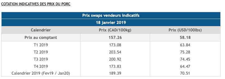 Voici les cotations indicatives et les dernières nouvelles sur les marchés du porc et des grains:
