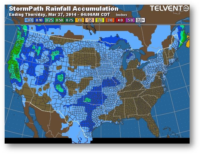 Les intentions d’ensemencement seront à surveiller dans le rapport de lundi, mais elles reflèteront la situation en date du 1er mars; les conditions météo n’ont pas vraiment collaboré depuis et le départ est plus lent qu’à l’habitude. Informa a publié sa prévision de 93 millions d’acres, ce qui est légèrement supérieur à la moyenne estimée par le marché. L’évaluation de l’évolution des semis rapportée hier indique que plusieurs des États du sud sont en retard sur le rythme moyen des cinq dernières années. Au cours des quelques prochains semaines, on pourrait voir un réchauffement du sol dans le sud mais un maintien du froid dans le Midwest.