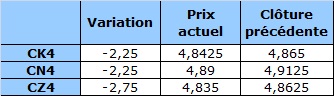 Évolution du prix des porcs castrés et des jeunes truies selon le National Daily Direct Afternoon Hog Report d’hier : baisse prévue de 0,87 $ par rapport à la clôture précédente