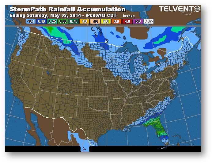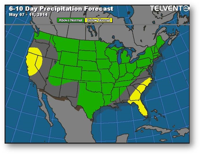 Du côté des prévisions météo, entre 65 et 70% du Midwest devrait recevoir moins de 25% des précipitations normales entre aujourd'hui et le 10 mai. Une semaine de temps sec permettra une bonne progression des semis. À l'échelle internationale, l'ensemencement se poursuit en Chine alors que la pluie freine un peu les agriculteurs dans le sud-est de l'Europe.
