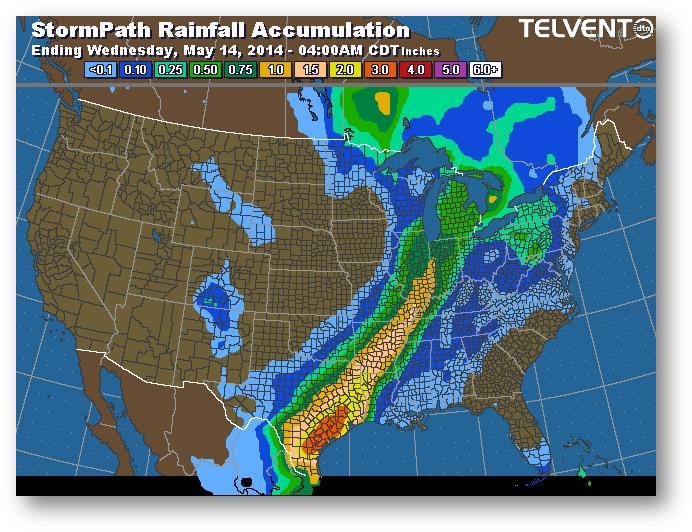 Hier, la progression des semis a été évaluée à 59% comparativement à 29% la semaine dernière et à 58% pour les cinq dernières années. L'avancée a été marquée dans la partie centrale de la Corn Belt, notamment en Iowa (de 47% à 70%). L'Illinois a vu une augmentation importante de 35% à 78%. Les états du nord de la Corn Belt continuent de traîner de la patte; le Dakota du Nord n'a semé que 3% de son maïs (moyenne de 33%) et le Minnesota seulement 31% (moyenne de 62%). Les travaux dans les champs ralentiront sûrement cette semaine en raison des précipitations. On s'attend à ce que le résultat de la semaine prochaine avoisine les 75%.