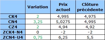 Contrat à terme du maïs à 6 h HAC : en hausse