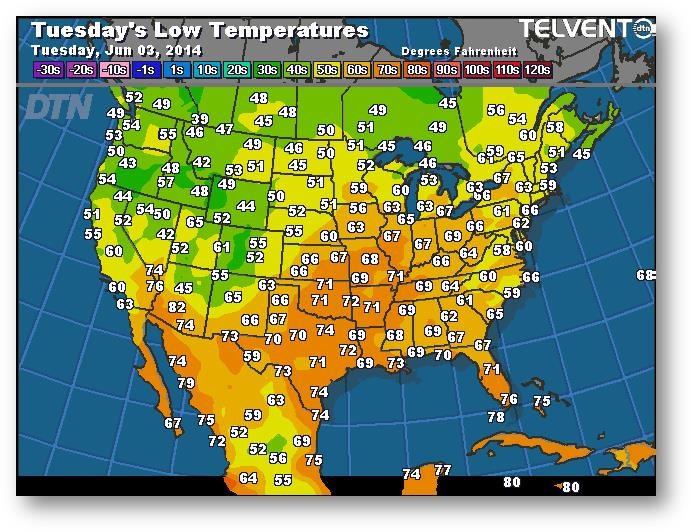 Prévisions des températures les plus basses (degrés Farenheit)