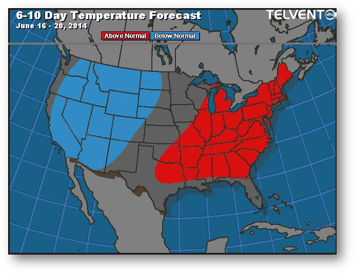 Prévisions de températures pour les 6 à 10 prochains jours
