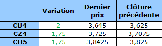 - Prix calculé en fonction du rapport 201 du CME hier :