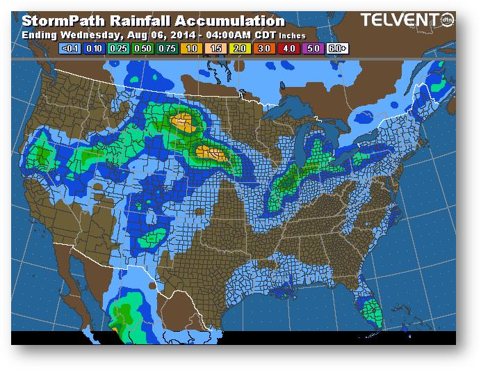 Les prix du maïs semblaient vouloir suivre ceux du soja. Les modèles météo ne présentent pas les mêmes prévisions. Les exportations étaient de 44,9 millions de boisseaux, ce qui est supérieur à la moyenne hebdomadairede 35 millions nécessaire pour les quatre prochaines semaines en vue d'atteindre la prévision du USDA de 1900 millions de boisseaux. Le blé a inondé le marché international de l'alimentation animale, ce qui fait trébucher la demande de maïs. L'Ukraine sera la plus touchée. FC Stone a évalué le rendement à 172,4 boisseaux par acre pour les États-Unis.
