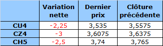 - Prix calculé en fonction du rapport 201 du CME hier :