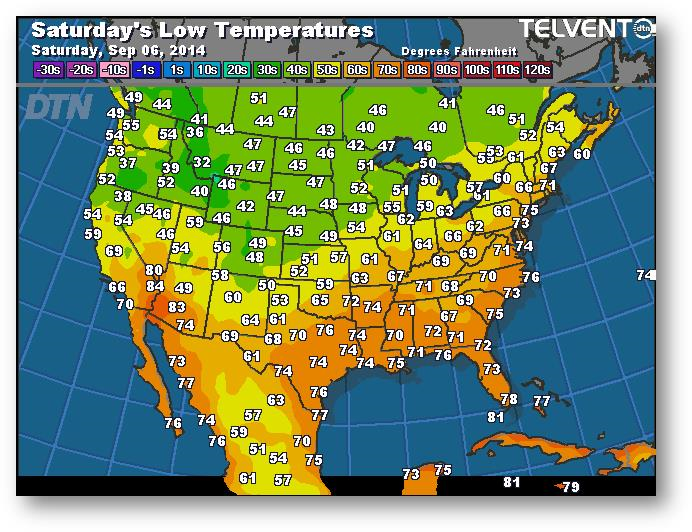 Prévisions des températures les plus basses (degrés Farenheit)