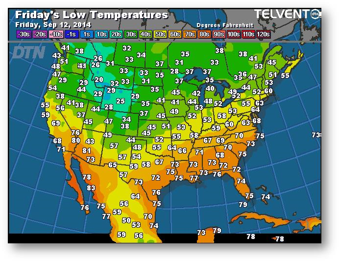 Prévisions des températures les plus basses (degrés Farenheit)