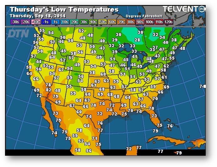 Le grand écart entre les données de la FSA et du NASS fait jaser. L'écart devrait diminuer, toutefois le marché ne devrait pas réagir énormément vu les rendements obtenus jusqu'à maintenant. Si l'écart devait être maintenu, cela signifierait des stocks de report moins importants que prévu actuellement. Les marchés au comptant semblent s'adoucir à l'approche de la pression de la récolte; les agriculteurs se sentent pressés de sortir l'ancienne récolte pour faire de la place pour la nouvelle.
