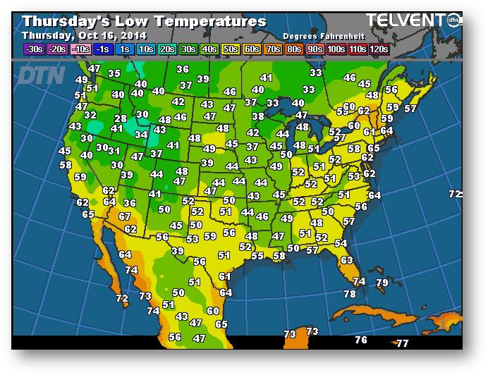 Prévisions des températures les plus basses (degrés Farenheit)