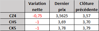 - Prix calculé en fonction du rapport 201 du CME hier :