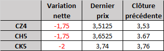 - Prix calculé en fonction du rapport 201 du CME hier :