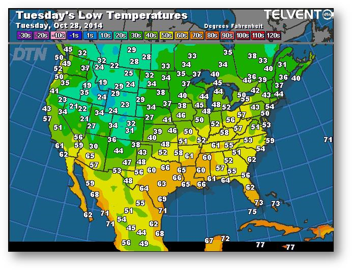 Prévisions des températures les plus basses (degrés Farenheit)