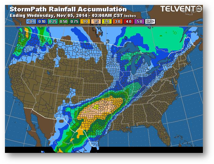 Trajectoire de tempête – Accumulation de précipitations (pouces)