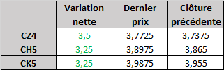 - Prix calculé en fonction du rapport 201 du CME hier :