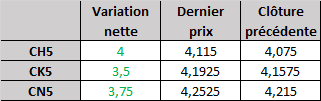 Contrat à terme du maïs à 6 h HNC : en hausse
