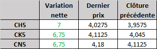- Prix calculé en fonction du rapport 201 du CME hier :