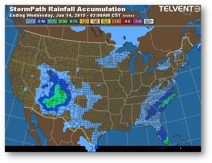 Trajectoire de tempête – Accumulation de précipitations (pouces)