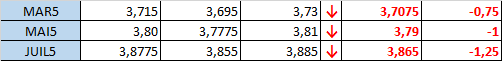 - Prix calculé en fonction du rapport 201 du CME hier :