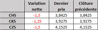 - Prix calculé en fonction du rapport 201 du CME hier :