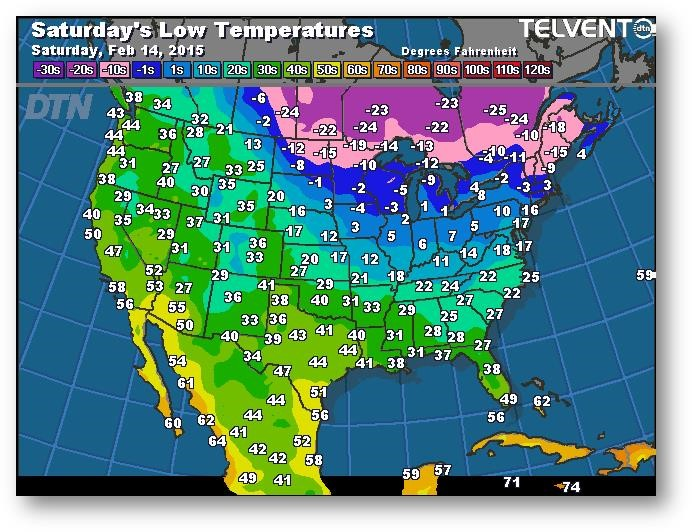 Prévisions des températures les plus basses (degrés Farenheit)