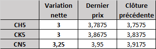 - Prix calculé en fonction du rapport 201 du CME hier :