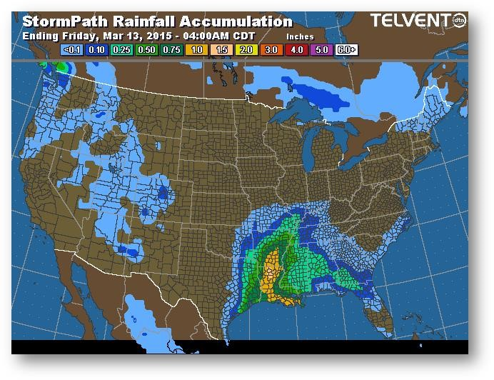 Trajectoire de tempête – Accumulation de précipitations (pouces)