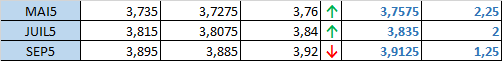 - Prix calculé en fonction du rapport 201 du CME hier :