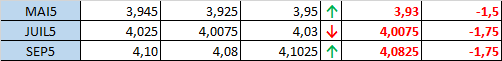 - Prix calculé en fonction du rapport 201 du CME hier :