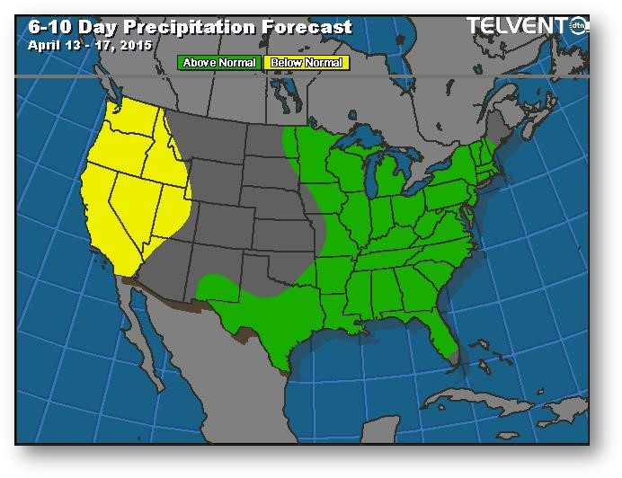 Les nouvelles fondamentales à court terme vont dans les deux directions, mais les stocks élevés à court terme, les inquiétudes relatives à la demande d'exportation et la faible demande aux États-Unis envoient un signal baissier à court terme. La nouvelle de mise aux enchères de maïs en Chine ce jeudi et la force du dollar américain ont contribué à faire reculer les prix du maïs à un nouveau creux pour la semaine. La faiblesse des prix du soja a également pesé sur le maïs. Selon toute vraisemblance, les précipitations dans le Midwest n'inquiètent pas en ce qui a trait à l'évolution de l'ensemencement, probablement parce qu'il est encore tôt et que les États-Unis sont reconnus pour arriver à compléter les semis à l'intérieur d'un délai très serré. Les prévisions pour les cinq prochains jours ont changé; on parle maintenant de 50 à 100 mm de pluie pour le centre de l'Illinois, l'Indiana et l'Ohio, ce qui pourrait supporter les prix. Le marché semble assez convaincu que les rendements seront élevés cette année. Pour ce qui est de la mise à jour des données relatives à l'offre et à la demande demain, on s'attend à des stocks de report d'environ 1,854 milliards de boisseaux comparativement à l'évaluation de 1,777 en mars.