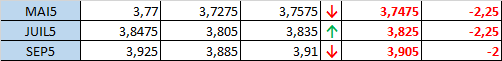 - Prix calculé en fonction du rapport 201 du CME hier :
