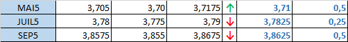 - Prix calculé en fonction du rapport 201 du CME hier :