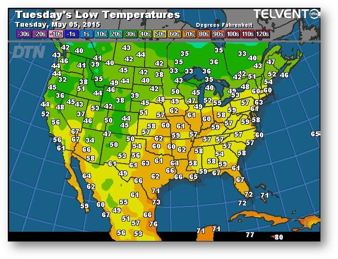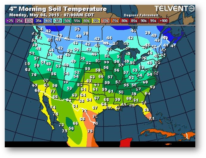 On s'attend de plus en plus à ce que l'ensemencement de maïs ait atteint 50-55% dans le rapport de cet après-midi. L'augmentation moyenne pour la dernière semaine est de 20%, ce qui se traduirait par un résultat de 40% si on l'ajoute au total de la semaine passée. Les conditions météo dans la Corn Belt ont été excellentes dans la majorité des secteurs et certains affirment même avoir déjà terminé les semis de maïs et avoir commencé le soja.