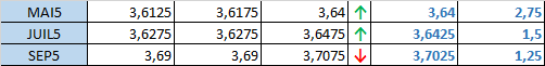 - Prix calculé en fonction du rapport 201 du CME hier :