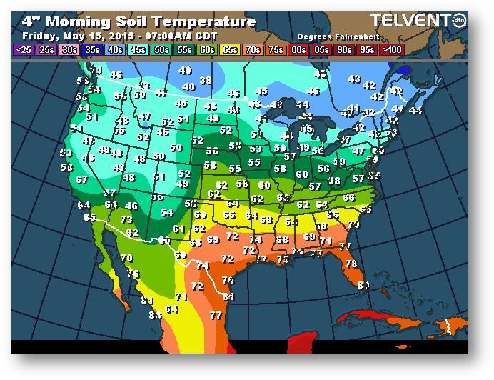 Température du sol en matinée à une profondeur de 4 pouces (degrés Farenheit)
