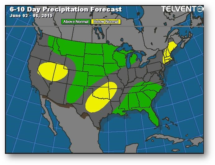 Les prix s'approchent des creux de contrat puisque les conditions météo sont favorables dans l'ensemble. Les marchés au comptant continuent d'amincir l'écart entre juillet et septembre et les valeurs se raffermissent légèrement. Les utilisateurs finaux se montrent patients; ils savent que les stocks de maïs devront sortir tôt ou tard. Les spéculateurs ont encore de la place pour augmenter leur position courte, mais on ne voit pas la nécessité de pousser le marché sous les creux de contrat avant que l'émergence soit complète. Il ne faut pas s'attendre à une importante prise de profits à la fin du mois; aucune menace météo à l'horizon.