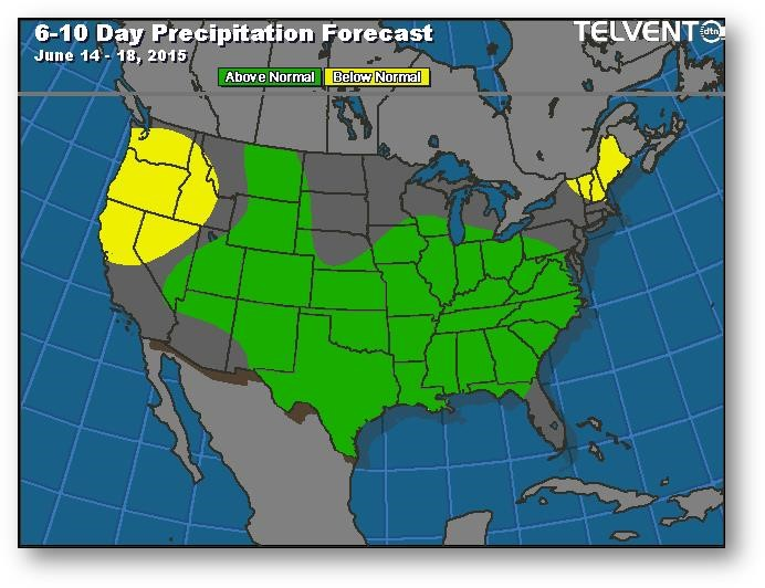 Les inquiétudes persistent en ce qui a trait aux cultures au Canada, dans l'Union européenne et dans l'ancienne Union soviétique. La Corn Belt aux États-Unis attendait des précipitations et elle les a reçues; ainsi on voit revenir une prime de risque. Au Brésil, la récolte de maïs semble gigantesque et posera un problème aux exportations américaines. Les exportations ont ralenti à 29,1 millions de boisseaux, ce qui est inférieur à la moyenne hebdomadaire nécessaire de 35-37 millions. Les agriculteurs aux États-Unis continuent de garder la main sur leur ancienne récolte, ce qui a causé et causera des pertes à l'exportation. L'évaluation de l'état des cultures n'a presque pas changé depuis la semaine dernière.