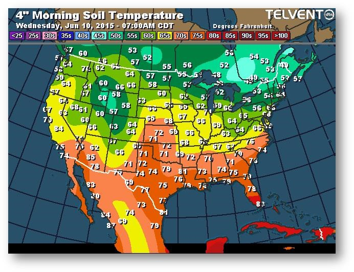 Température du sol en matinée à une profondeur de 4 pouces (degrés Farenheit)
